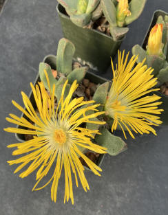 a highly succulent mesembs forming dense mats of clustered rosettes. daisy-like,