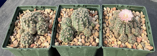 Pale-pink to purplish-pink flowers. This species is sometimes combined with Gymnocalycium