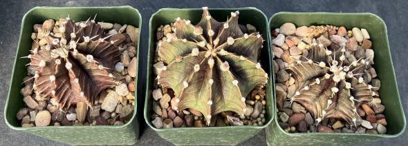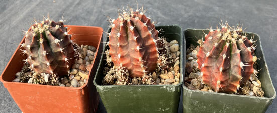 Gymnocalycium mihanovichii variegata "Black Widow" lg - Seed grown. Growing in 4
